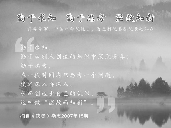 毛江森院士执着科研,坚守初心,泽被苍生,心系百姓,毕其一生于抗病毒事业,为医学病毒学的研究贡献自己的力量。如今毛江森院士驾鹤仙逝,音容笑貌犹在眼前,殷殷教诲尚在耳边。我辈自当不负毛江森院士的嘱托和期望,认真工作,踏实做人,积极进取,努力前行!